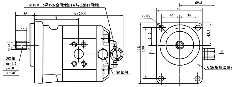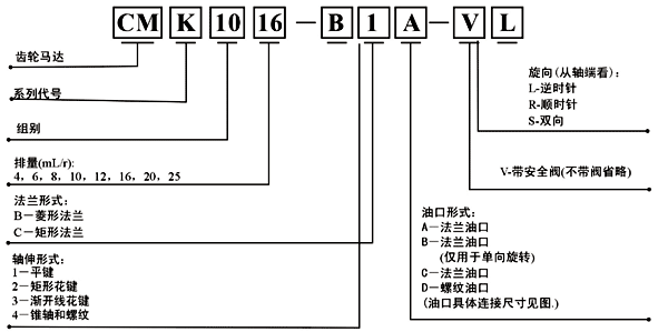 CMK1系列齒輪馬達(dá)可單向旋轉(zhuǎn),也可雙向旋轉(zhuǎn),單向旋轉(zhuǎn)時(shí)還可以帶安全閥,供用戶任意選用。
