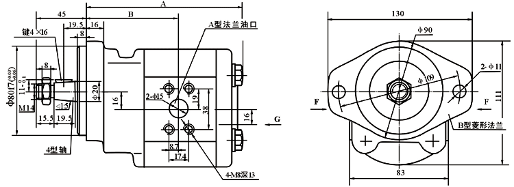 2.非額定工況下(壓力、轉(zhuǎn)速)的容積效率值參見工作性能曲線。 |