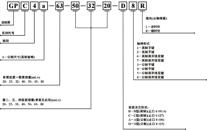 | 注:選用GPC4a時(shí),其安裝法蘭形式、軸伸形式均按公制選取。 |