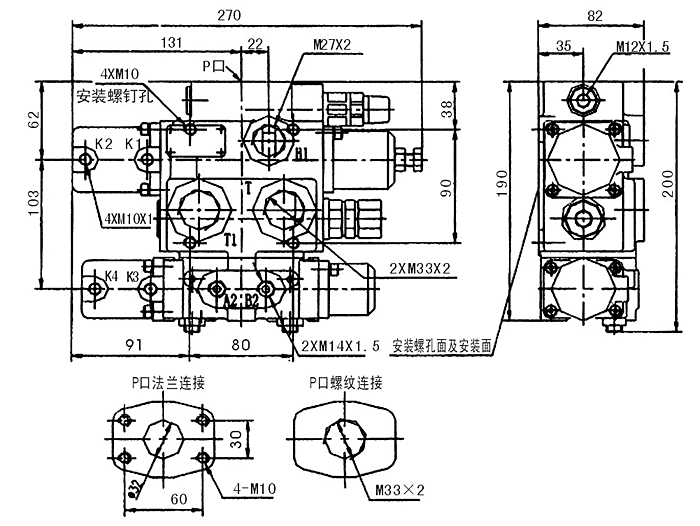 外形及安裝連接尺寸: QDF-L20F-A型: