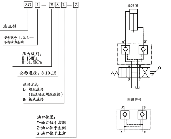 用途與特征: S0型液壓鎖(雙向液壓鎖)用于工程機(jī)械液壓系統(tǒng)中,直接裝在液壓缸上,可長時(shí)間保持液壓缸活塞桿的位置不變。該液壓鎖主要用于起重機(jī)械,礦山機(jī)械或其它機(jī)械的液壓系統(tǒng)中。 型號(hào)說明: