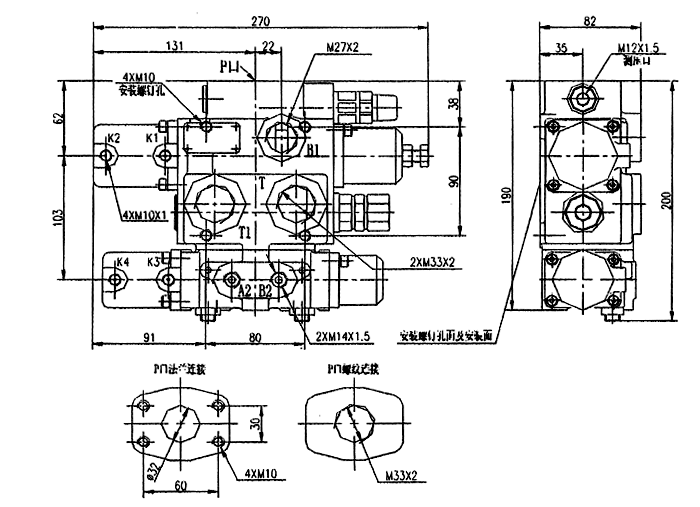 QDF型氣控多路閥的外型及安裝圖: